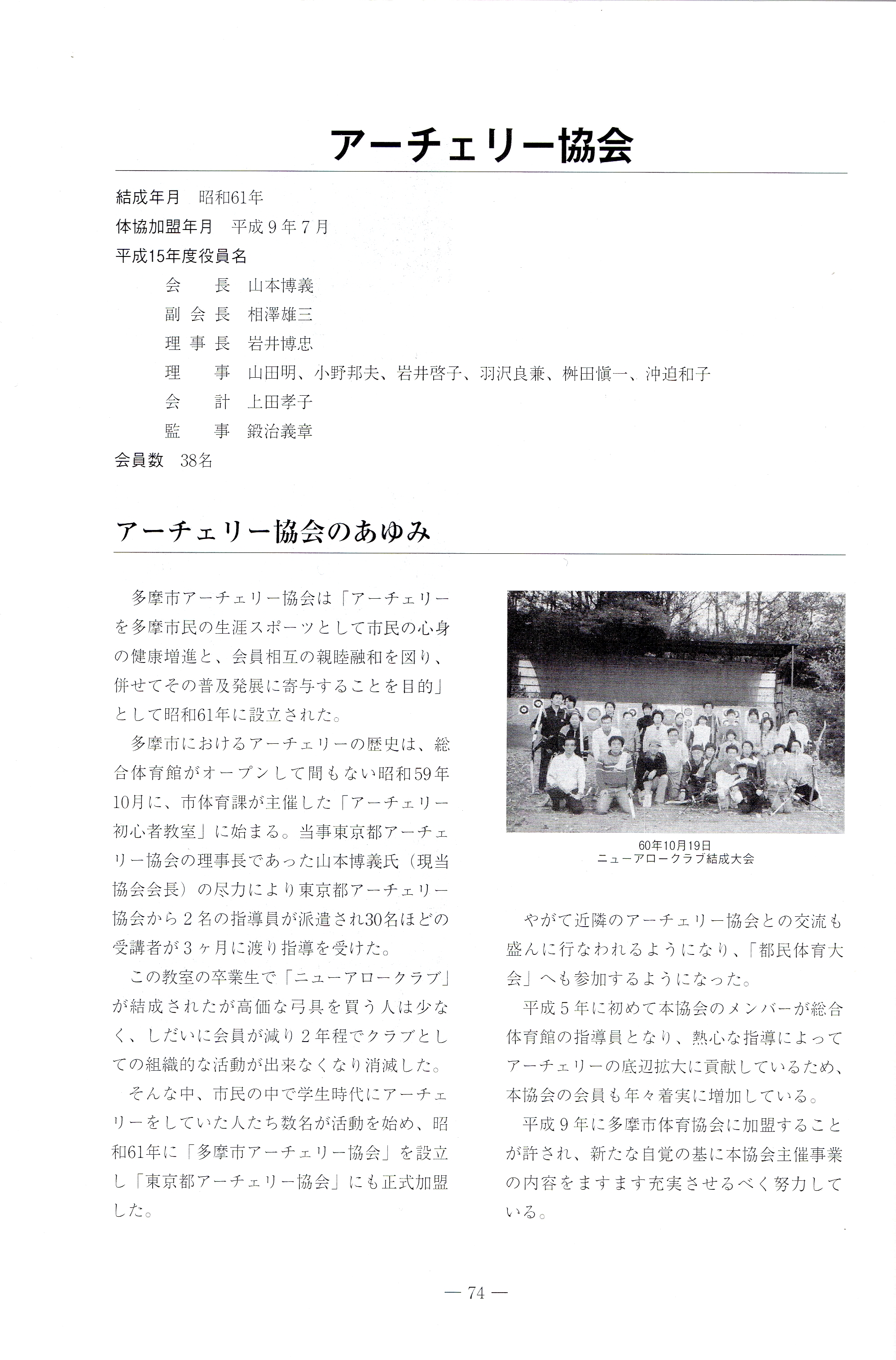 多摩市体育協会30年のあゆみ(1973年〜2003年)1/2