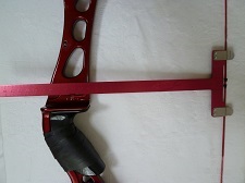 プランジャーチップの真ん中に接するように取り付ける | 金属または、プラスチック製のレストをハンドルのプランジャー取付け穴に沿って両面テープで張り付ける | レストアームの角度も考慮に入れて矢こぼれや羽に当たらないように貼り付ける。レストのアームは、上から見た時に矢の外側に出ないようにカットする | ―― |